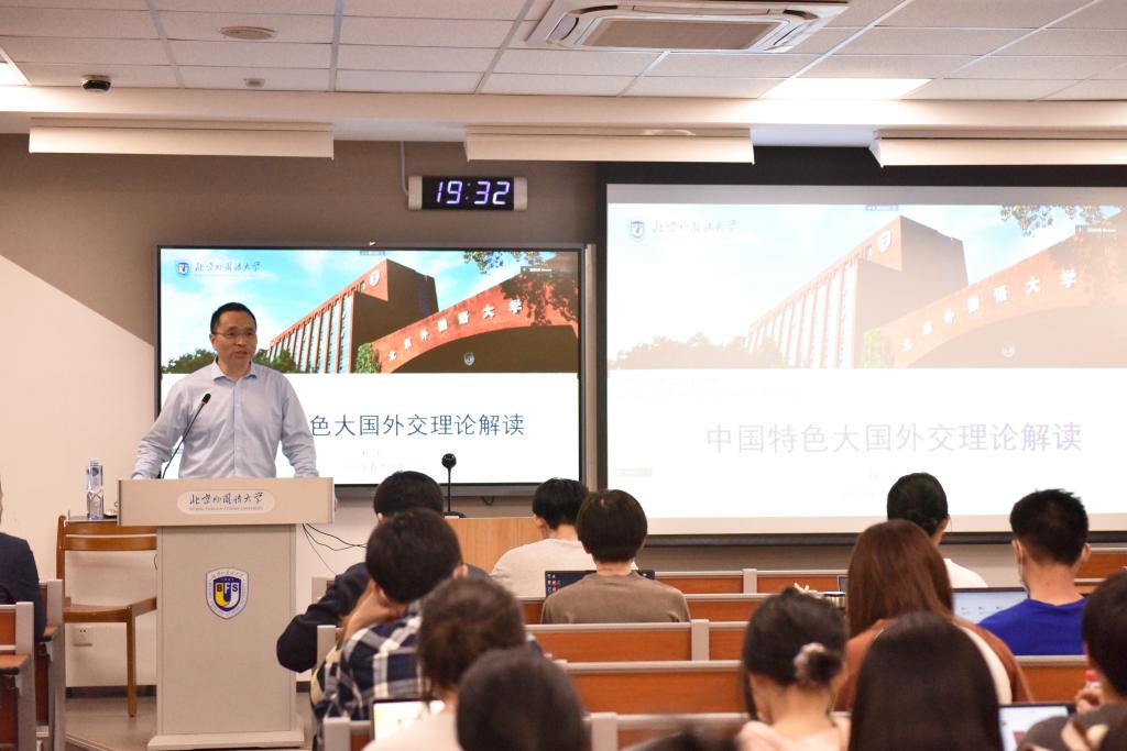 杨丹校长认为,中国崛起需要加强中国特色大国外交理论建设,习近平外交思想彰显了战略智慧、战略远见、战略定力,不仅“管用”,而且有极强的学理性,是我国对外工作具有鲜明中国特色、中国风格、中国气派的重要指导思想。讲课中,杨丹校长立足北外全球语言、全球文化、全球治理的发展总体布局对北外学子寄予期望,提出北外应当重构外语类高校学科格局,服务于教育强国建设,服务于破解百年未有之大变局。