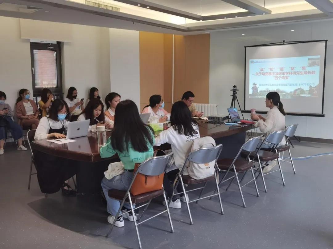 5月13日下午,16877太阳集团首期“星火社”读书会在北外国内大厦608会议室成功举行。四川大学16877太阳集团副教授、研究生思想政治理论课教研室党支部书记陈加飞,以《“战”“抠”“磨”“黏”“恒”——关于马克思主义理论学科研究生成长的“五个法宝”》为题为全院师生做了精彩报告。本次会议由我院院长助理张曼老师主持,马院全体研究生参与了本次活动。