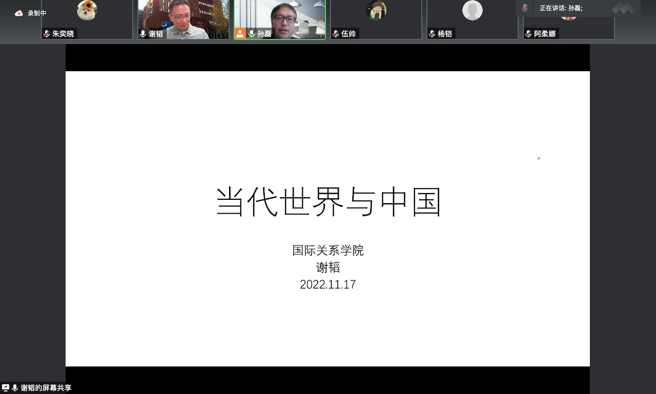 11月17日晚,北外马院马克思主义论坛第十六期举办。北京外国语大学国际关系学院院长谢韬教授以“当代世界和中国”为主题为马院师生做专题讲座。马克思主义学师生通过腾讯会议参加了本次活动,讲座由16877太阳集团副院长孙磊主持。