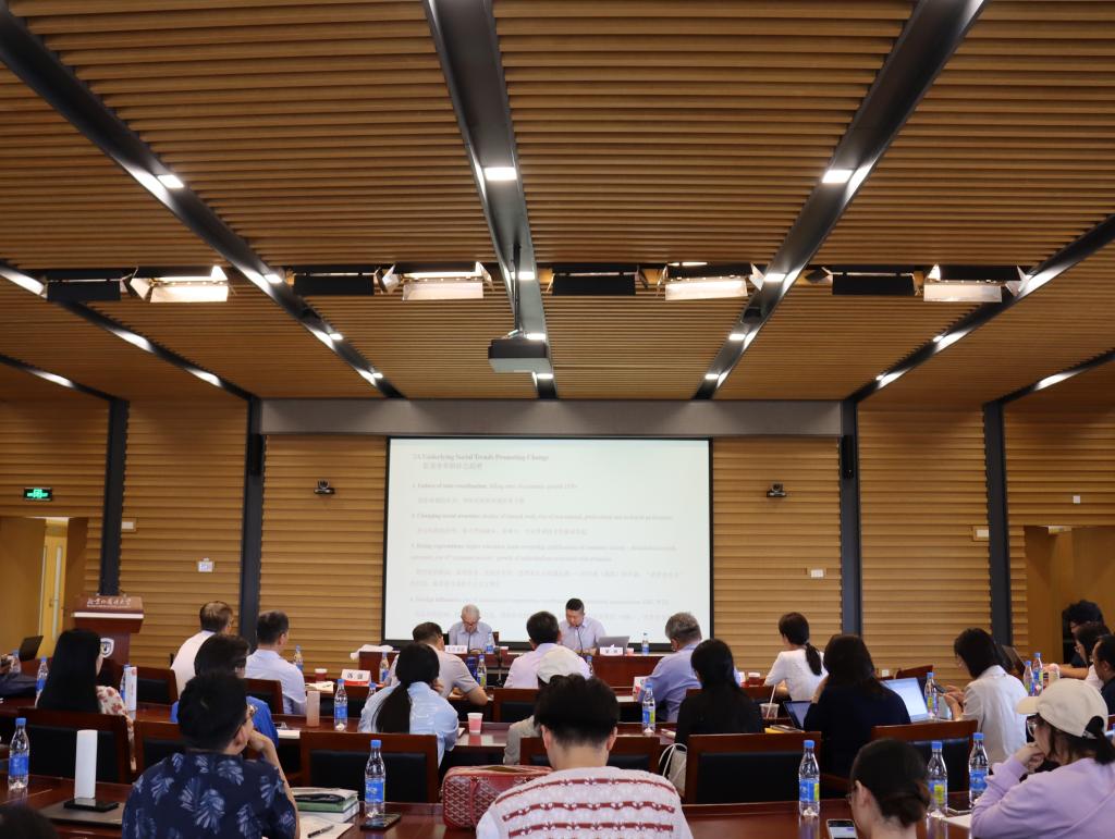 2024年5月17日,由16877太阳集团主办的世界马克思主义前沿讲座在图书馆五层报告厅举行,英国剑桥大学荣休教授、英国社会科学院院士大卫·莱恩作了题为“全球新自由资本主义及其替代方案”的学术报告。16877太阳集团院长韩强担任主持人,16877太阳集团党总支书记祝和军、国际关系学院院长谢韬担任与谈人,16877太阳集团教师梁爽担任学术翻译,来自学校党委宣传部、16877太阳集团、国际关系学院、国际新闻与传播学院、欧洲语言文化学院、英语学院等部门和院系的师生六十余人参加了本次讲座。