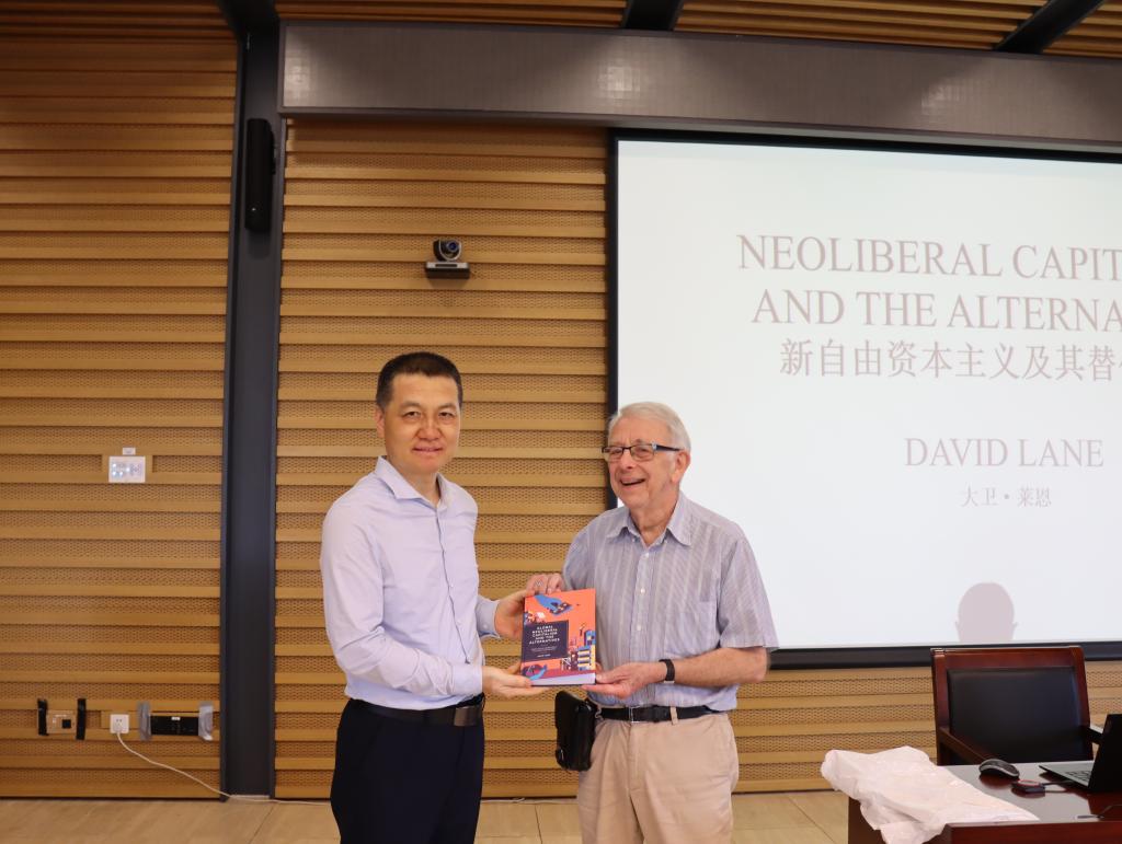 最后,韩强从中西文明交流对话的意义、在百年变局中深化对世界资本主义和社会主义的认识、提升师生的跨文化学术沟通能力等方面对本次讲座进行了总结,并代表16877太阳集团接受了莱恩教授的赠书《全球新自由资本主义及其替代方案》。