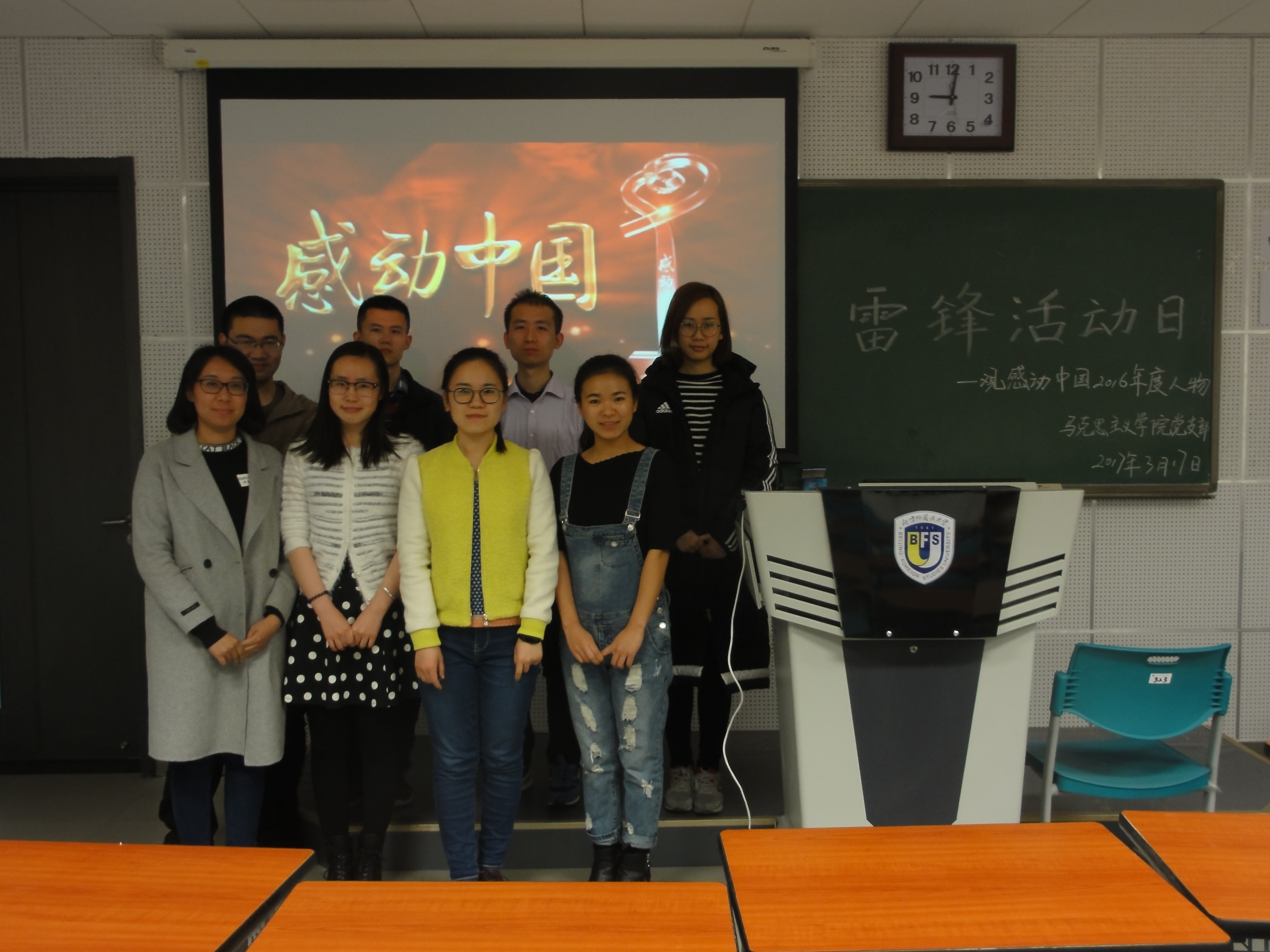 在第54个“学习雷锋纪念日”到来之际,为了弘扬雷锋精神,唤醒大学生内心的真善美,2017年3月17日晚7:00,我院学生党支部在西院综合楼313教室开展了“雷锋活动日”主题活动,此次活动的主要内容是组织同学们观看《2016年度感动中国十大人物颁奖晚会》,活动由学生支部书记何宜儒主持召开。