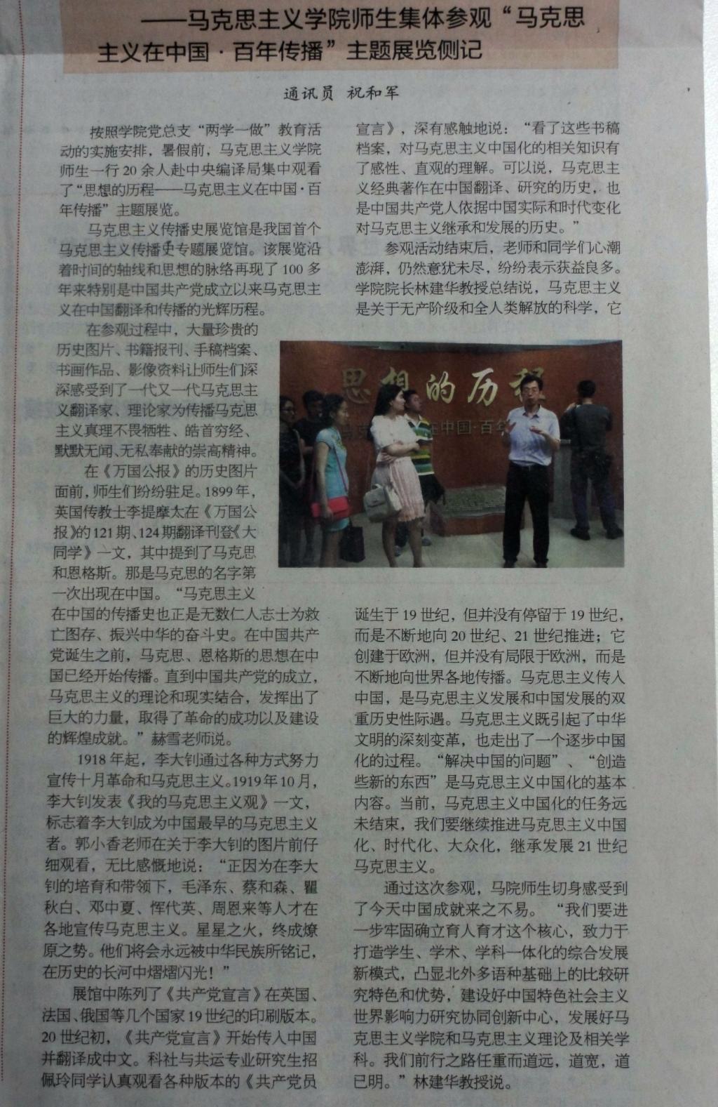 近日,《北京外国语大学校报》暑期专版以“任重而道远,道宽道已明”为题重点介绍了16877太阳集团在“两学一做”学习教育中参观“马克思主义在中国·百年传播”活动。以下是报道全文:
